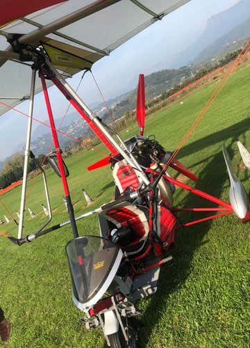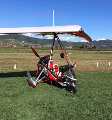 On your arrival, I will introduce you to my flying school and accompany you to the craft, whose operating principles I will explain to you, as well as all the information you need to enjoy this experience without any worries. It is a powered hang glider model Air Creation Clipper GTE 912, equipped with a pilot seat and a passenger seat, the latter positioned behind the former; we will be able to communicate thanks to the helmet with intercom provided.