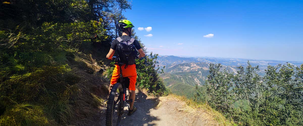 The following day, after checking out by 10: 00 a. m., you will reach the e-bike rental organisers in Poppi, about 10 minutes' drive away. They will assign you the most suitable e-bike, provide you with a helmet and backpack, and show you possible itineraries.