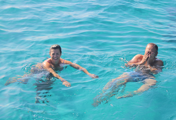 Theboat is a wooden motorboat over 10 metres long equipped with cushions, awning, toilets, freshwater shower, beach towel and climbing ladder. Dogs are not allowed on board.