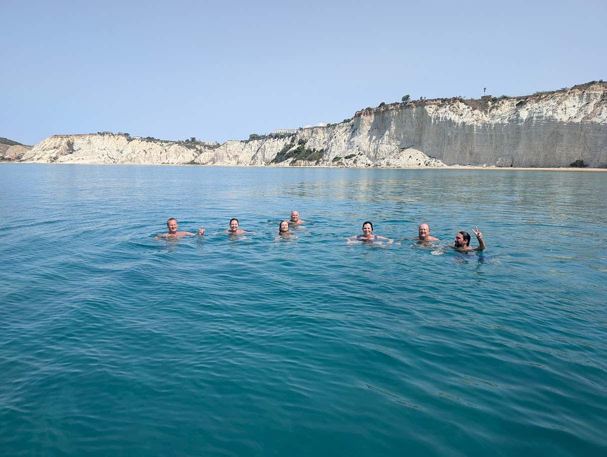 Here we will make a 30-40 minute stop at a distance of 120-150 metres from the beach, to enjoy a swim and admire the Scala dei Turchi in all its majesty. Back on board, we will refresh ourselves with a cool drink kindly offered by the skipper.
