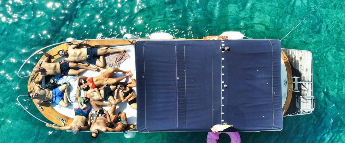 Theboat used is a traditional 7.70 m wooden or 8.20 m fibreglass gozzo, equipped with cushions, ladder, awning and freshwater shower. No shoes are allowed on board.