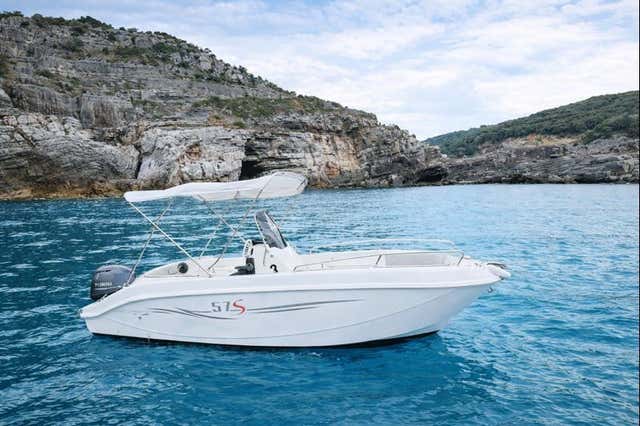 You will take command of a 5. 70-metre boat that is agile and safe, equipped with a large sunpad in the bow and an awning to shelter you from the sun. Since it is equipped with a 40-hp engine, you can drive it without a licence.