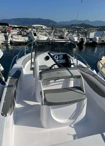 The boat is licence-free, comfortable and stable, 5.80 metres long, with a 40 hp engine. On board you will have an awning, shower, stereo system with USB and ice box (ice can be purchased at the port).