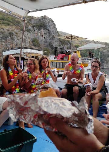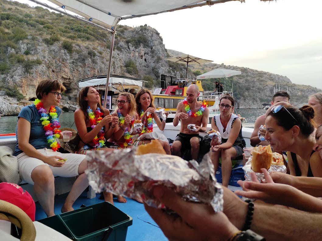 During the outward journey, we will make two 15-20 minute boat stops to bathe in the turquoise waters along the coast. After the first swim, a delicious Cilento breakfast awaits us on board with a fragrant zeppola, perfect for recharging our batteries, and later a tasting of mozzarella di bufala campana.