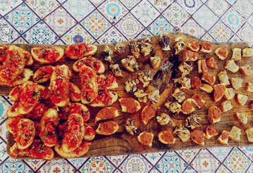 Our captain will lead us towards the Faraglioni of Levanzo and offer us a series of delicacies to enjoy as we observe the evocative surrounding landscape from a privileged perspective. Immersed in a fairy-tale setting, we will enjoy an aperitif of typical Sicilian bruschetta, local products and the inevitable bubbles!
