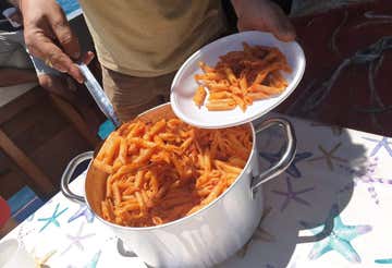 Around 14: 00 we will enjoy our km 0 lunch. We will taste pasta with prawns and scampi, fried paranza fish, sausage and local cheese. There will be wine, beer and homemade myrtle to finish with homemade sweets .