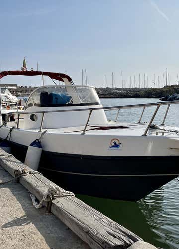 Theboat is a 7.50-metre long motor boat with a 150 HP engine. It is equipped with a sun deck at the bow, a large 3-metre awning at the front and rear, a freshwater shower, a ladder and a non-cabin toilet (available on request). Shoes are not permitted on board, you remain barefoot. Small dogs are allowed on board.