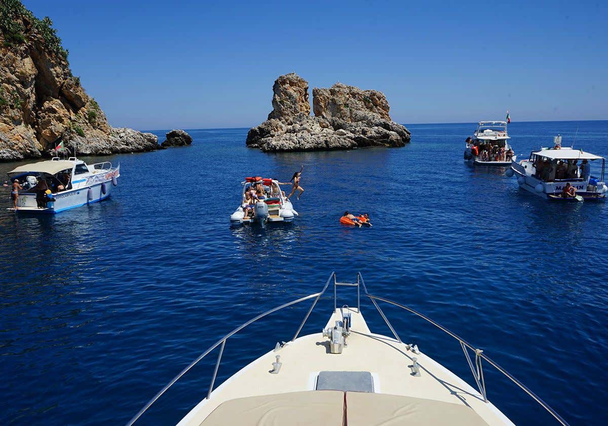 Not only beautiful nature and crystal clear sea, our excursion will include a tasty aperitif on board with typical Sicilian products, including pane cunzato, primosale cheese, seasoned olives, wine and water. Once the sea-view aperitif is over, the boat will head back to San Vito Lo Capo.
