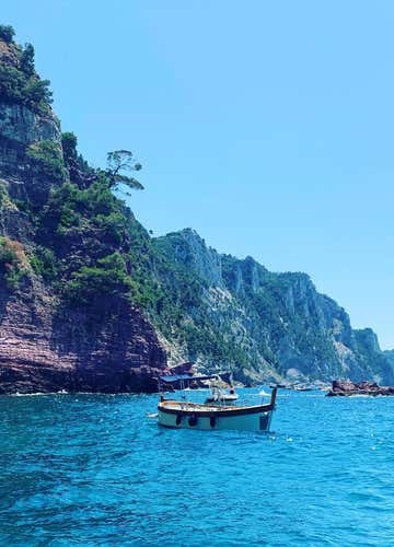 Also in Portovenere , there is a stretch of coastline with a cove called Rocce Rosse , which we will reach around 12.30 pm, the perfect time to enjoy a tasty aperitif in front of the marvellous landscape of unusual colours. The aperitif (included) includes Ligurian focaccia to be accompanied by wine and non-alcoholic drinks, as well as a pasta dish cooked on board. We will also have time here to dive and snorkel with friendly little fish.