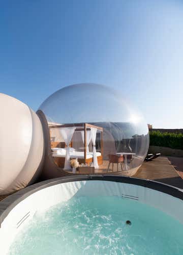 A night in the Bubble Room is a magical experience that combines nature and comfort: you can relax in your heated whirlpool bath and, in the morning, enjoy breakfast served directly in the bubble.