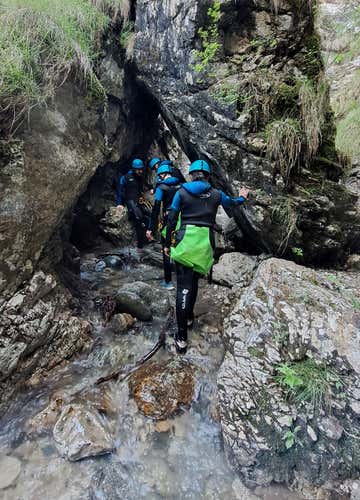 We will meet in Porto Valtravaglia (VA), at the meeting point indicated in the booking confirmation. Before starting the activity, we will get dressed and have a short briefing to better discover this adrenalin-pumping activity, which allows you to traverse mountain torrents by combining trekking with some mountaineering techniques.