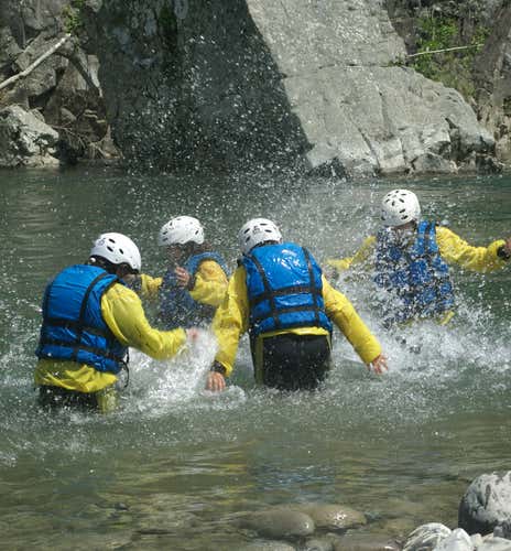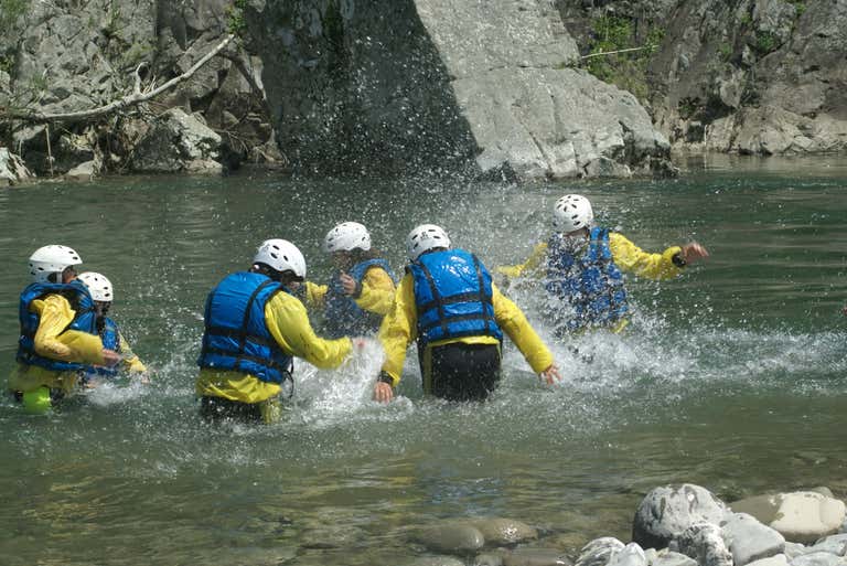 Before going into the water, we will participate in a technical briefing on the safety rules to be observed during the experience. We will then begin the descent of about 5 km, alternating between natural slides, rope descents and pools of water where we can swim. The stops we will make will all have a playful character, except for one of about 15 minutes, which will be dedicated to a mini-training course on flood self-rescue.