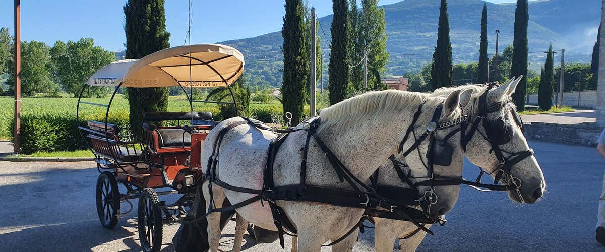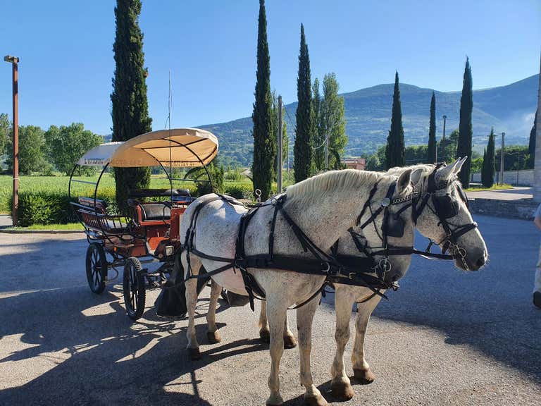 The appointment is at 9.00 a.m. near Rivotorto in Assisi (PG). We will be welcomed by guides and horses already harnessed and ready for the tour. After introductions, we will get into the carriage and set off in the direction of Spello.