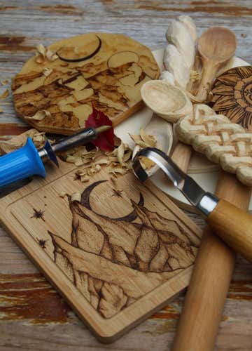 - Create a carved spoon and a pyrographed painting with your own hands