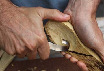 The first half of the day will be dedicated to carving a wooden spoon. We will use a bushcraft knife and hook knife, focusing on correct posture, controlled cutting techniques and the use of protective tools such as gloves and vises.