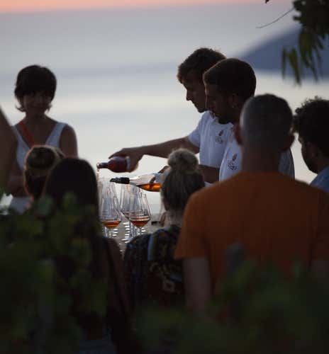 Having gathered all the participants, the experience will begin with a visit to the winery: we will enter the production room, walking among steel tanks and amphorae, and then venture deep into the scenic underground barrique cellar. We will then reach the panoramic terrace, enjoying a unique view of the archipelago and toasting with our first glass of wine at sunset. This first part of the experience will last about 20 minutes.
