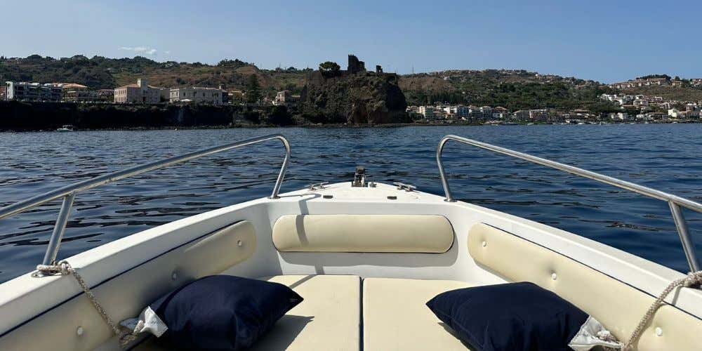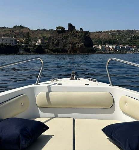 Once at the helm, you will be able to move easily along the coast, going as far as the Port of Catania or Capo Mulini, where you can stop for a dip or a lunch break on board, enjoying the beauty of the sea views.