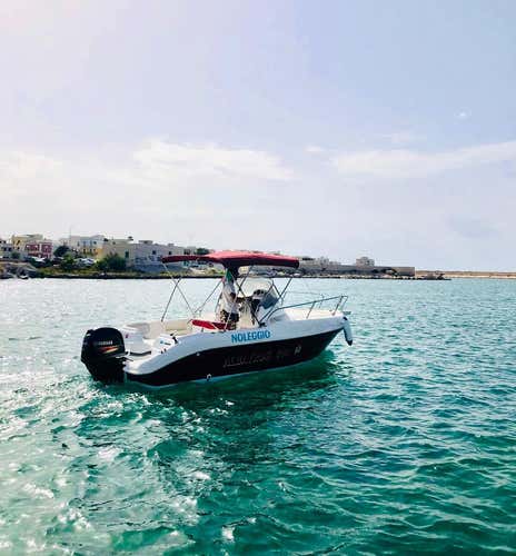 The appointment is 10 minutes before the selected time at the meeting point in Savelletri di Fasano (BR). You will be welcomed by the lessor, who will be ready to take delivery of the boat reserved for you, i.e. a 6-metre-long 40 hp motorboat with a sundeck at the bow, awning, sofa at the stern, and cabin with two beds.