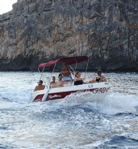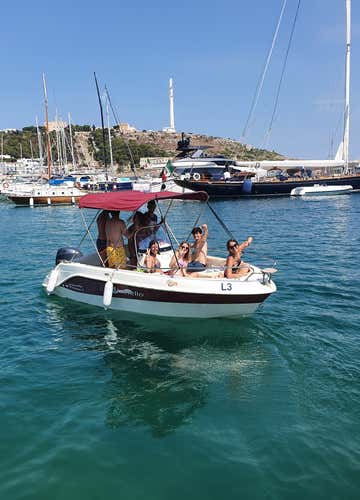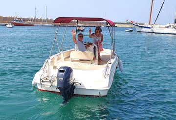 The boat is a 5.50 m Marinello Fisherman boat with a 40 HP engine and a maximum capacity of 5 persons. It is equipped with cushions, awning, sundeck, climbing ladder, freshwater shower, stereo and map of the area. It is necessary to remain barefoot on board and food and drinks are allowed. By contacting the organisers in advance using the contact details you will receive in your booking confirmation e-mail, you can request a snorkelling kit and a cool bag.