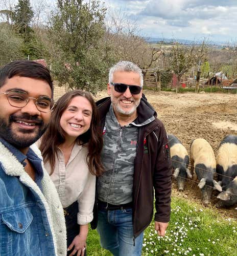 Cinta Senese pigs farm visit and light lunch in Montepulciano