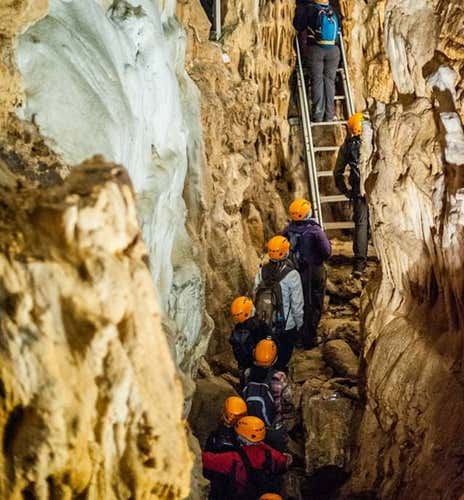 If the number of participants exceeds 20, the visit will be conducted in small groups of 20 people who will leave at a short distance from each other, each accompanied by a caving guide.
