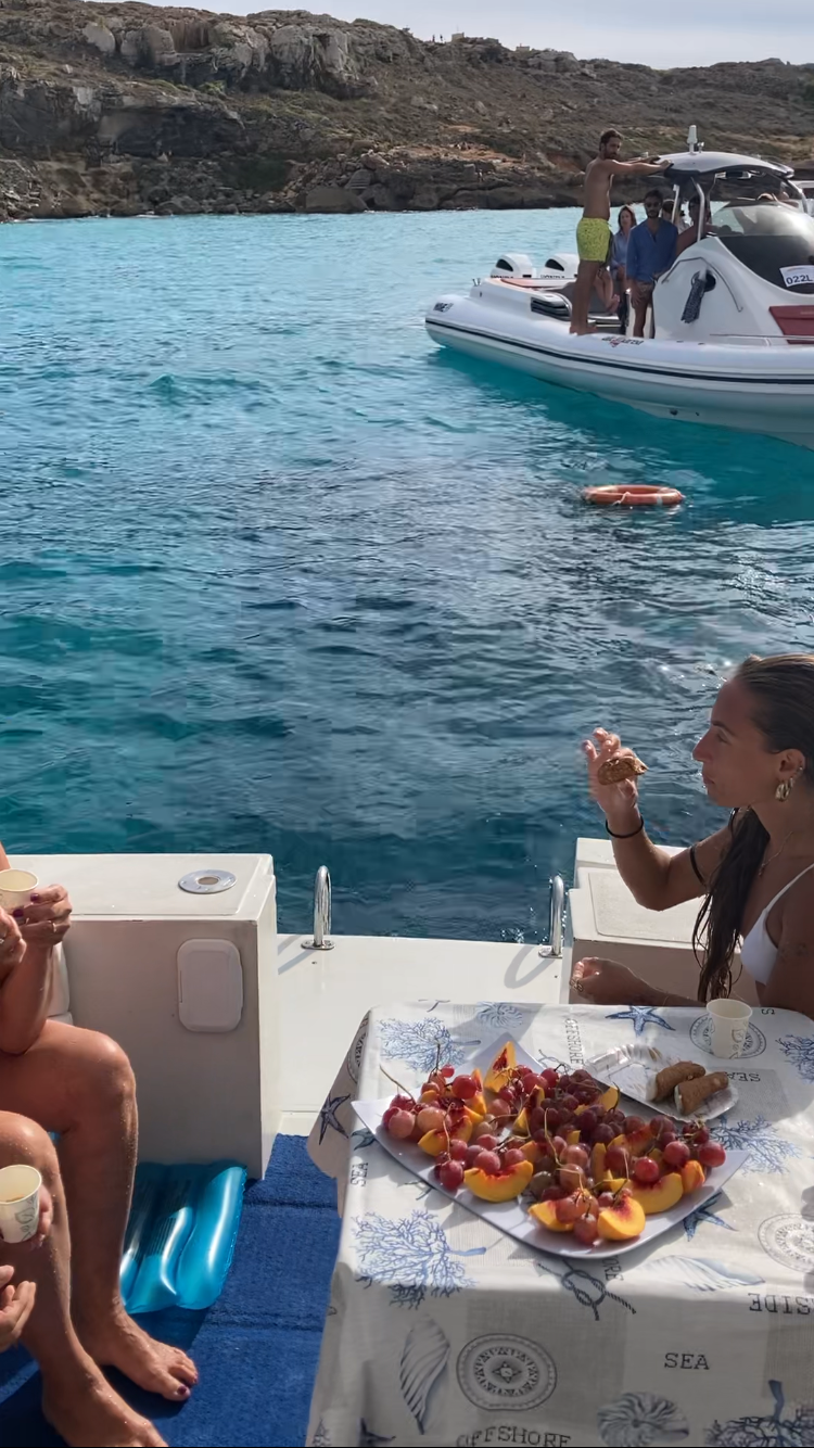 The route will continue towards Cala Rossa and finally Cala del Pozzo, a quiet beach sheltered from the current. Here the skipper will serve us lunch prepared on board, which includes a rich selection of typical Sicilian products.