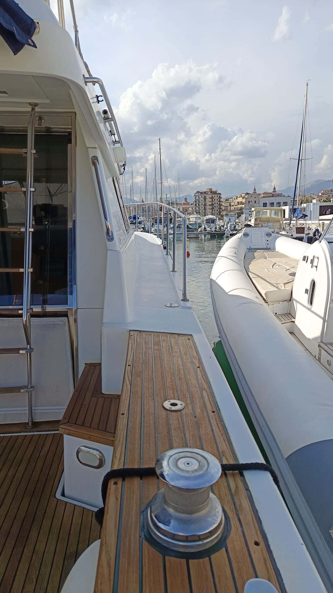 - a 12 m motor boat with a maximum capacity of 8 persons and equipped with awning, table and sofas, ladder, platform, freshwater shower, sundeck and tender.