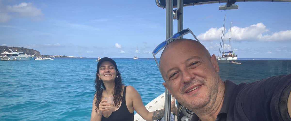The boat used is an inflatable boat between 8 and 8. 50 metres long, equipped with an awning, shower and climbing ladder. One stays on board without shoes.