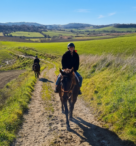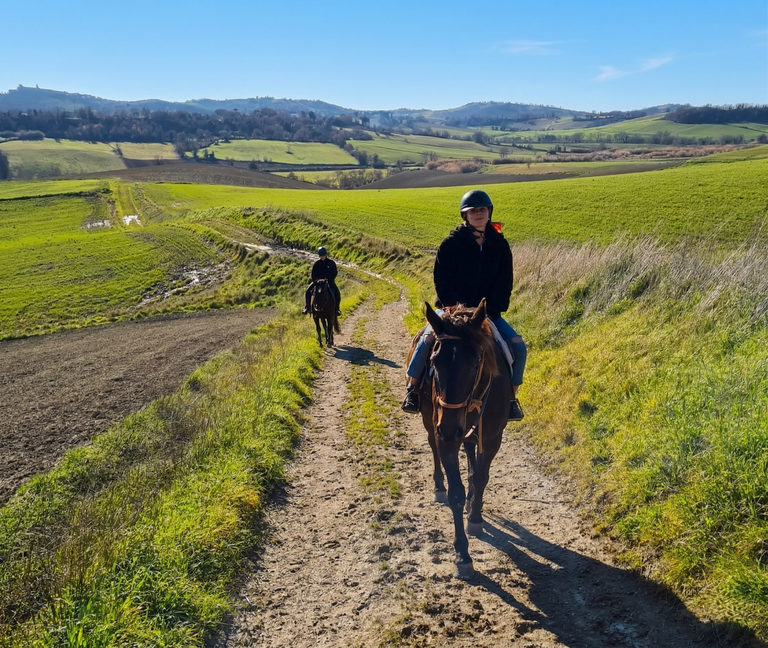 After the regenerating stop, we will get back on the horse. On the return trip to the riding stables, we will be surprised to see the enchanting hilly area that surrounds us.