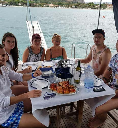 Swim in the waters overlooking attractions such as Grotta Regina, Tonnara Arenella, and Faro di Capo Gallo. Enjoy traditional dishes on board with lunch and an aperitif overlooking the Gulf of Mondello.