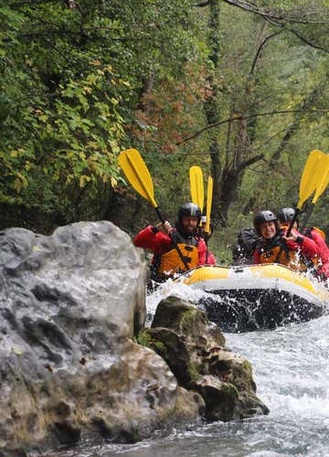 On board an inflatable boat for 2-6 participants (in addition to the guide), we will descend along a part of the river bordered by high cliffs and waterfalls that form one of the deepest and most beautiful canyons in Europe.
