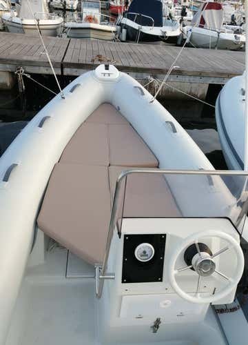 I will be waiting for you at the selected time at the meeting point in La Spezia. Upon your arrival, I will hand over the boat to you: the Lomac 520 dinghy, 5.20 metres long and 2.40 metres wide with a 40 HP engine; it is equipped with cushions, awning, and climbing ladder.