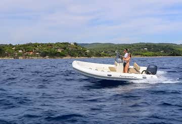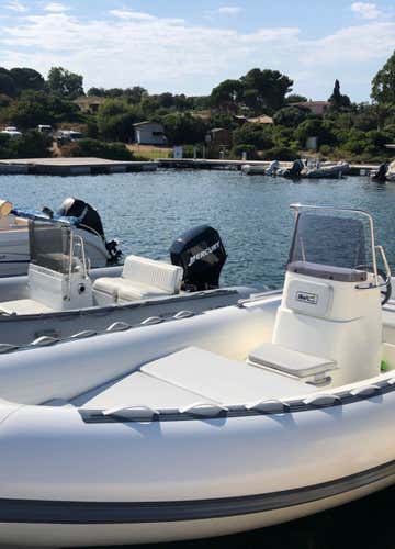 You will be driving a 5.30-metre-long SPX dinghy with a 40-hp engine and equipped with a sundeck, awning, and climbing ladder, ideal for accommodating up to 5 people on board. On the dinghy, you can also bring your own food and drinks to toast with friends in the middle of the sea or on the beach!
