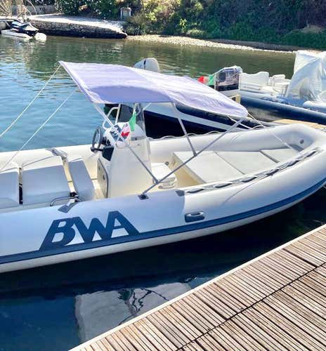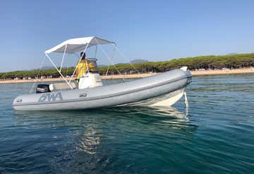 You will be driving a 5.50-metre-long BWA dinghy with a 40 HP engine and equipped with a sundeck, awning, and climbing ladder, perfect for comfortably accommodating up to 6 people. You can also bring food and drinks on board to enjoy a picnic lunch on the beach and make a toast on board!