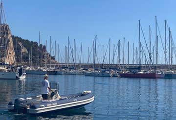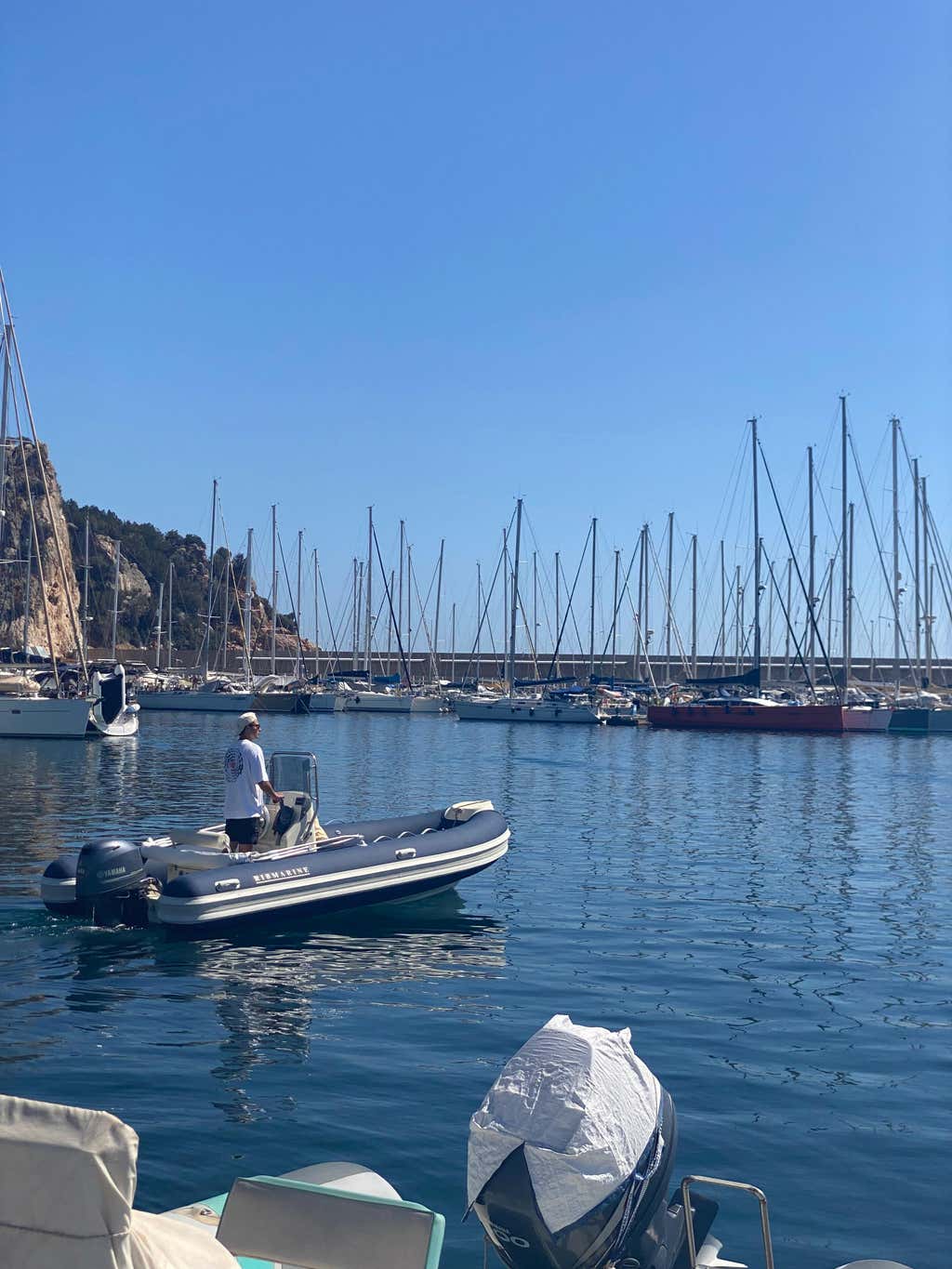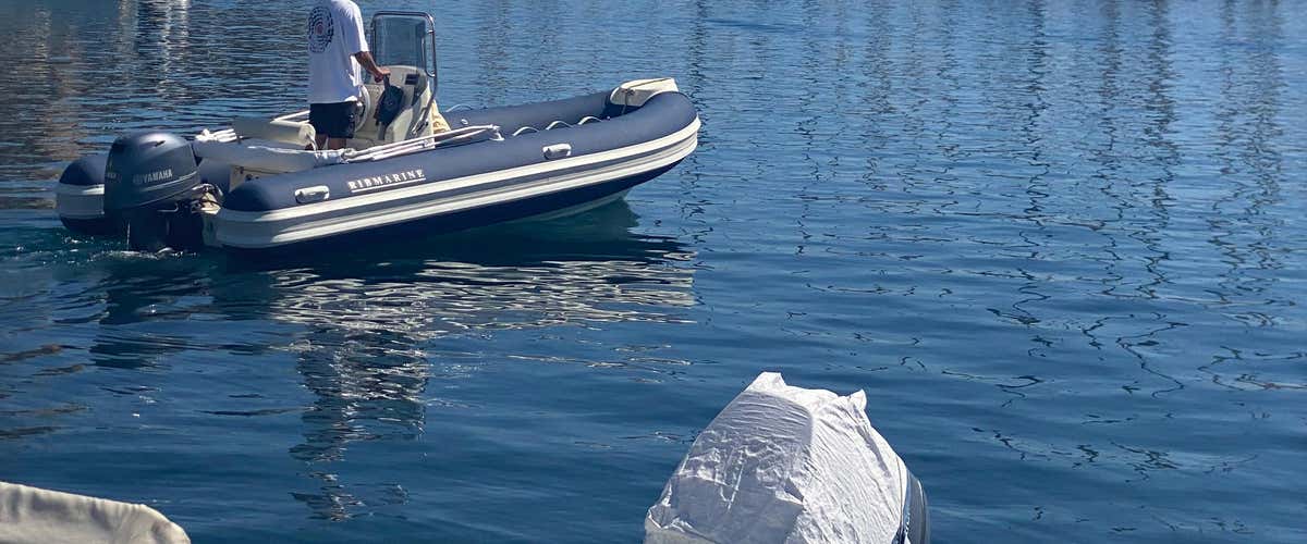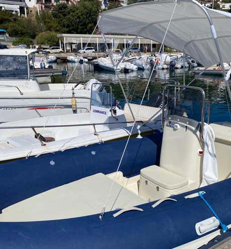 It is a 6-metre-long dinghy with a 40 hp engine, equipped with awning, shower, and ladder. Don't forget to bring food and drink on board to toast in company!