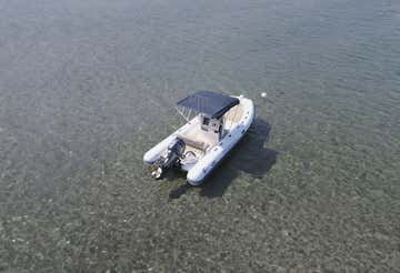The boat is a 5.30-metre-long SPX d inghy with a 40 HP engine and equipped with a sundeck, awning, and climbing ladder, ideal for accommodating up to 5 people. You can also bring food and drinks on board to toast in the company of your 'crew'!