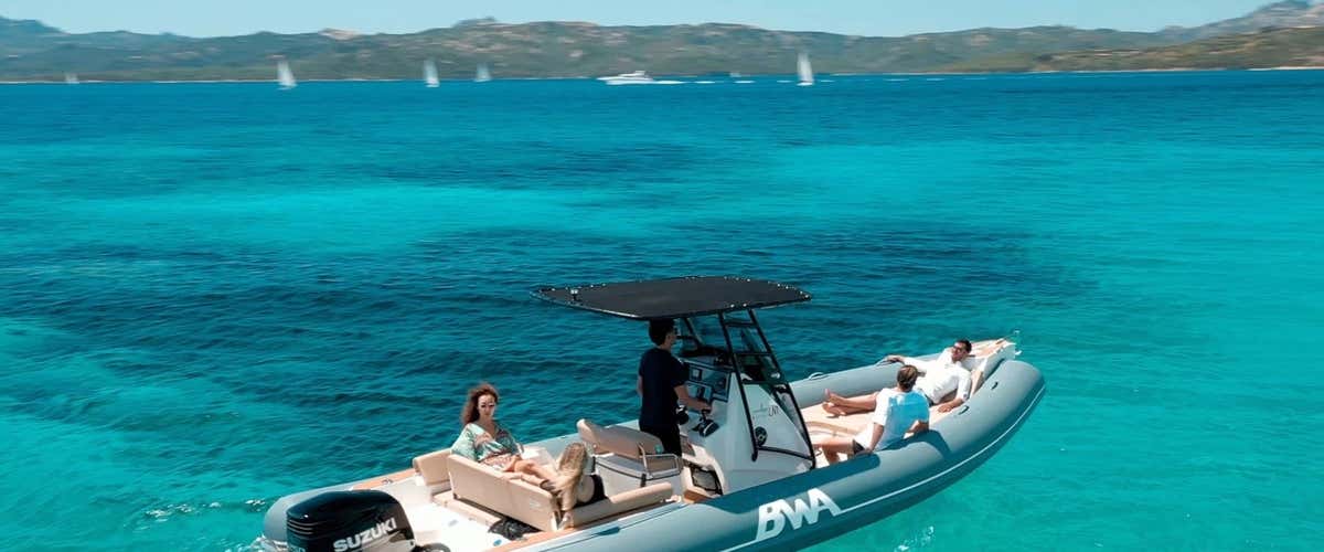 The boat at your disposal is a 7-metreBwa Sport Gt 22 dinghy , equipped with double sundeck in the bow and stern, shower and awning with roll bar, fridge. Dogs are not allowed on board.