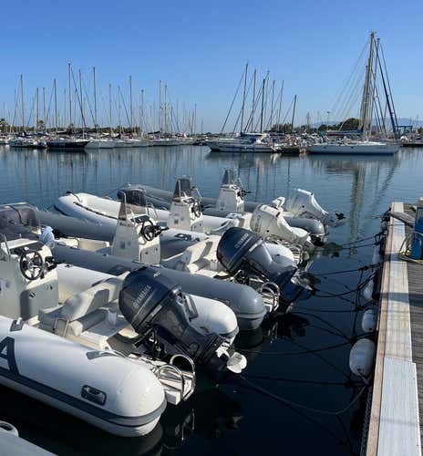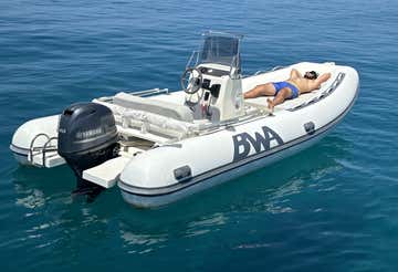 The 5.5-metre-long BWA dinghy is spacious and comfortable, equipped with sun cushions, awning, climbing ladder , and freshwater shower. The boat can comfortably accommodate up to 6 people - your little crew! - and can be driven without a licence.