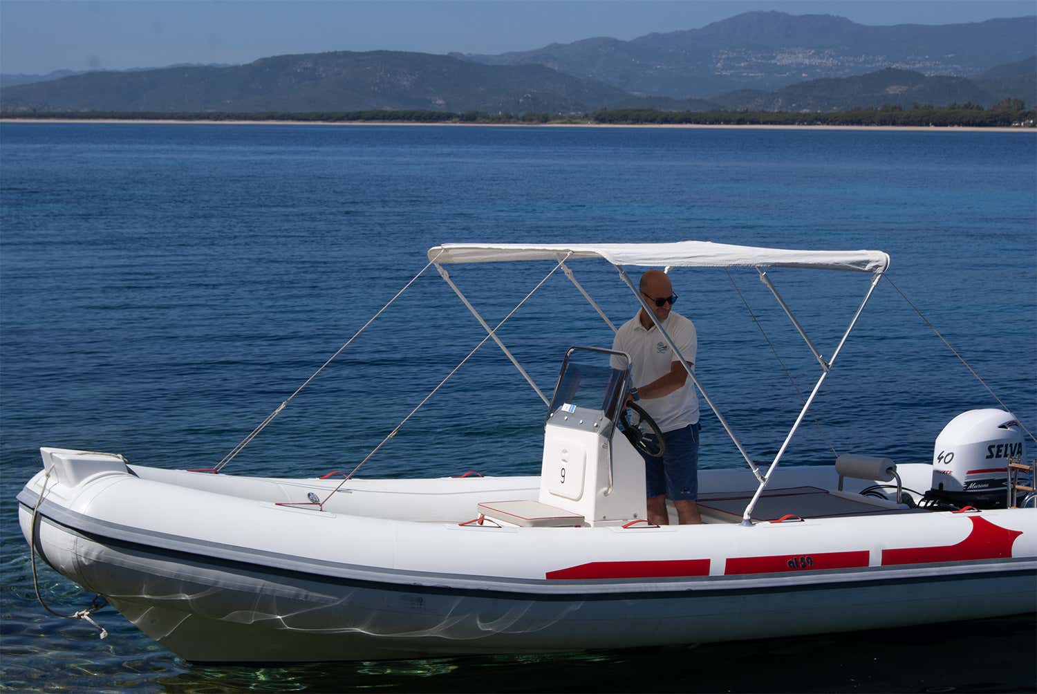 The boat you will be able to drive is a 5.9 m long dinghy with a Selva 40 HP engine, equipped with awning, large sundeck, safety equipment, life jackets, and a cooler with ice. The boat is ideal for 4 people. When you pick up your boat, you can also request a snorkelling kit and a portable shower.