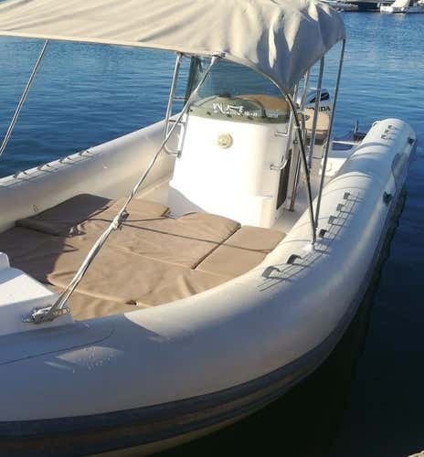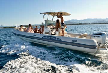 You will be on board a 9-metre Tempest 900 WA inflatable boat, powered by a Honda 250 hp engine and equipped with an awning for shelter from the sun.