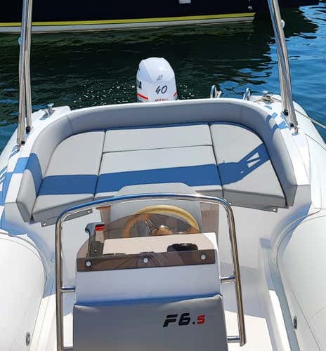 The boat is a 6.5-metre-long dinghy with a 40-hp engine, equipped with an awning and USB connections for charging your mobile phone.