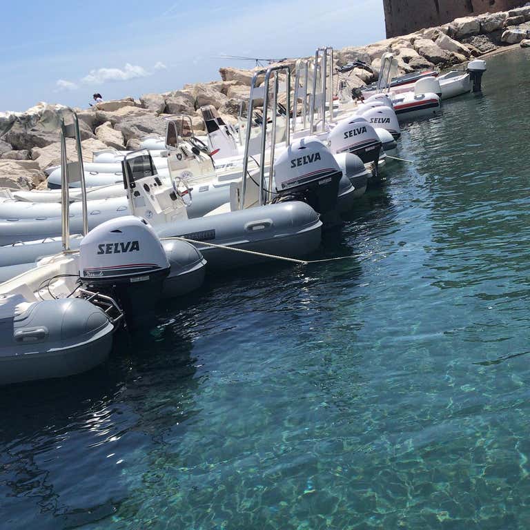 Discover the beauty of Posillipo and the Naples coastline by hiring a 5.80 m, 40 hp rubber dinghy for a full day, which can accommodate up to 6 people.