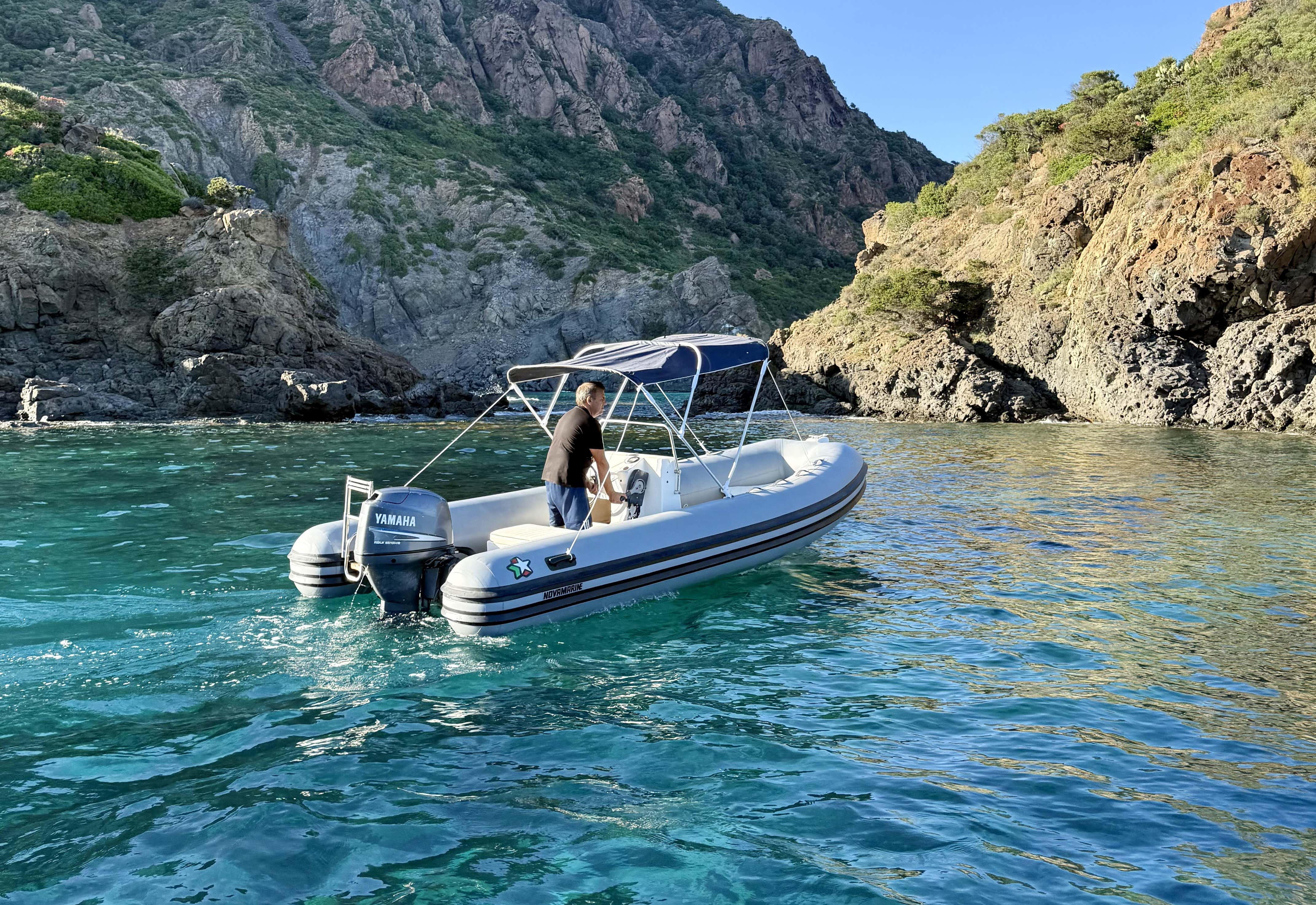 You will be on board a 5.40-metre-longNovamarine dinghy with a 40-hp engine, equipped with cushions, sundeck, ladder, and awning. The boat can carry a maximum of 7 passengers and can be driven without a licence.