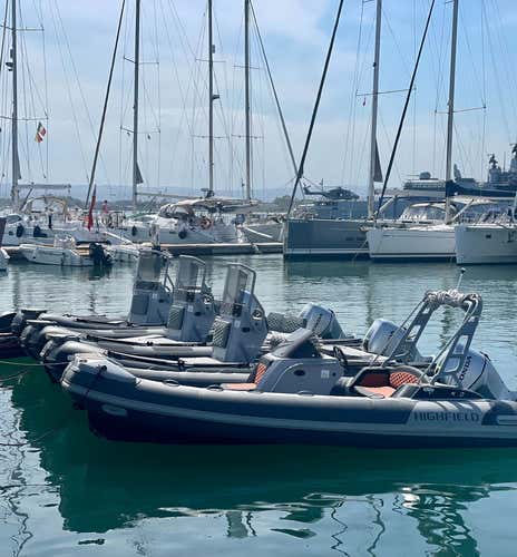 The boat available for hire is a 5.2 metreHighfield Sport 520 dinghy from 2021, with a 40 hp Honda engine. The boat is equipped with sun cushions, ladder, steering console, freshwater shower, awning and roll-bar. It is approved to carry up to 6 people on board.