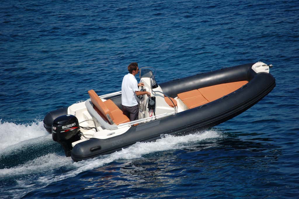 You will be on board the BSC 5.00 Elegance, 5 metres long and 2.3 metres wide, with a Suzuki 40 HP four-stroke engine and driveable without a licence. Despite its small size, it is equipped like a small yacht: