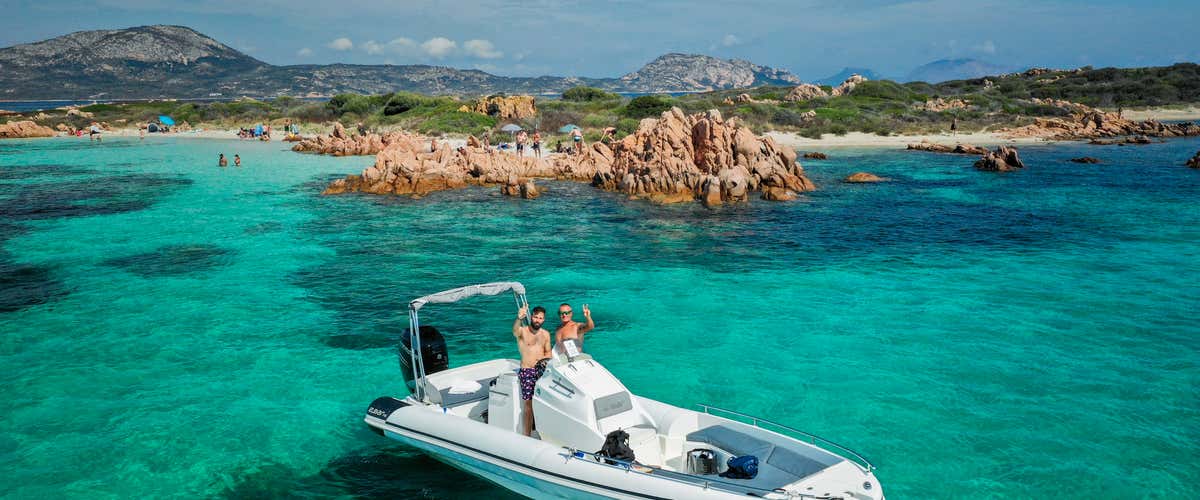 Dive into an experience of wonder and fun with this 4-hour dinghy tour betweenFigarolo Island and Cala Moresca, departing from Olbia.