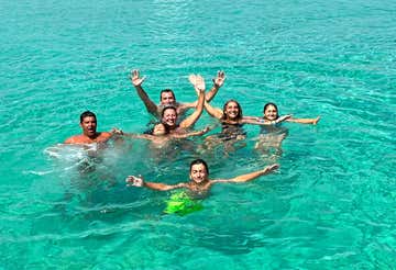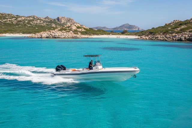 The boat used is a Marlin 850 HD PRO inflatable boat, 9 metres long and equipped with an awning, freshwater shower, refrigerator and stereo system. Sunscreen with 50+ protection is not allowed on board. Participants are asked to wear it before boarding.