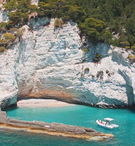 This is the secret combination of our dinghy tour: in the company of a skipper, set sail from Vieste to discover the main attractions of the coast. You will sail through the Gargano sea, exploring the most spectacular beaches and sea caves.