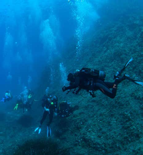 After a maximum of 50 minutes of navigation we will make our first 45-minute dive, followed by a snack on board that varies according to the season. In winter, hot tea and tomato bruschetta will be served, and in summer, bruschetta, fruit and cold drinks.
