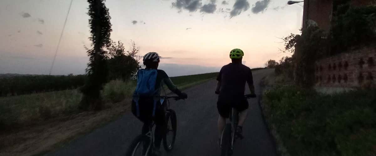 The meeting point is just before sunset in Cerrina Monferrato, in the province of Alessandria. Here the guide will be waiting for us, who will hand over the electric bikes, helmet and reflective jacket for when darkness falls (all equipment is included in the fee).